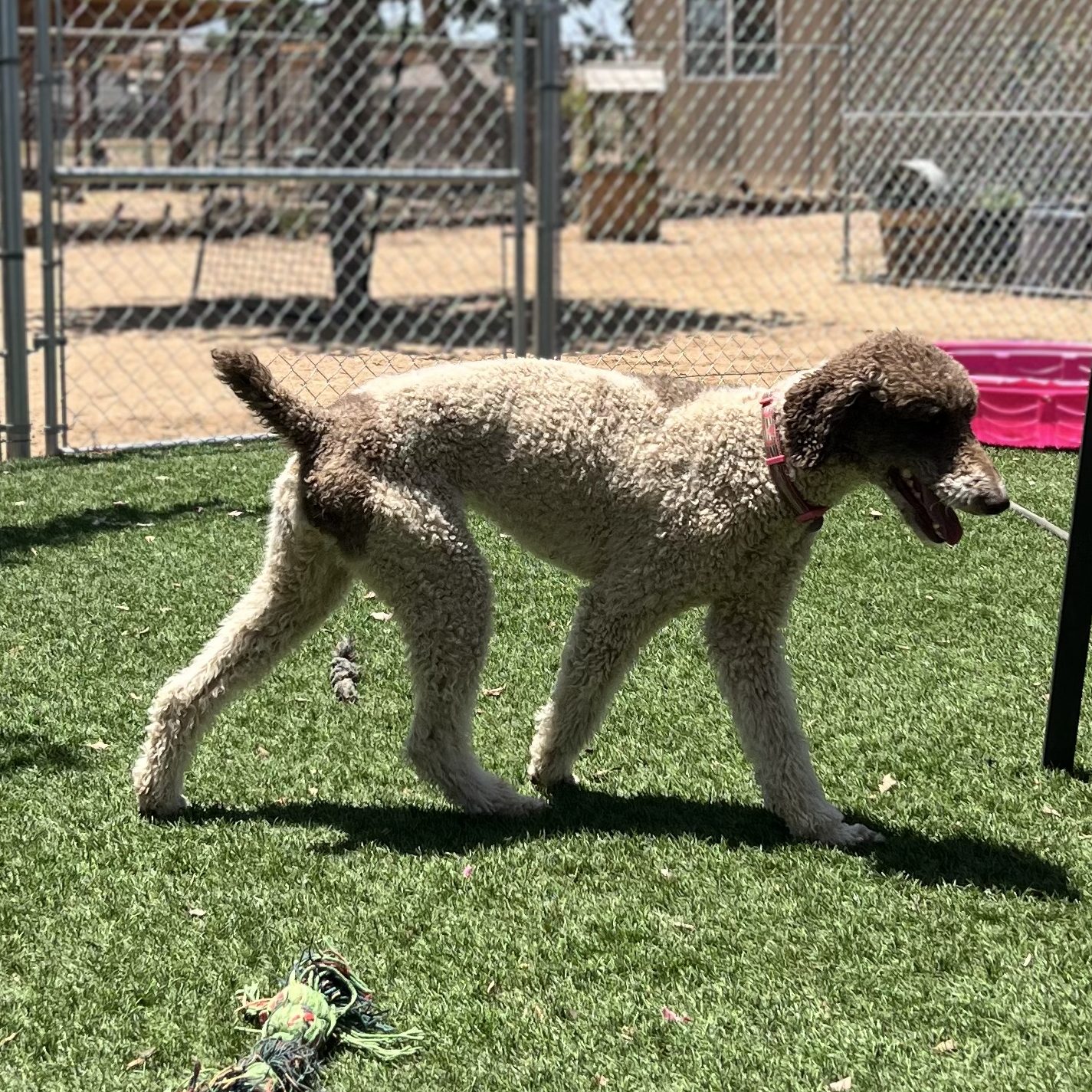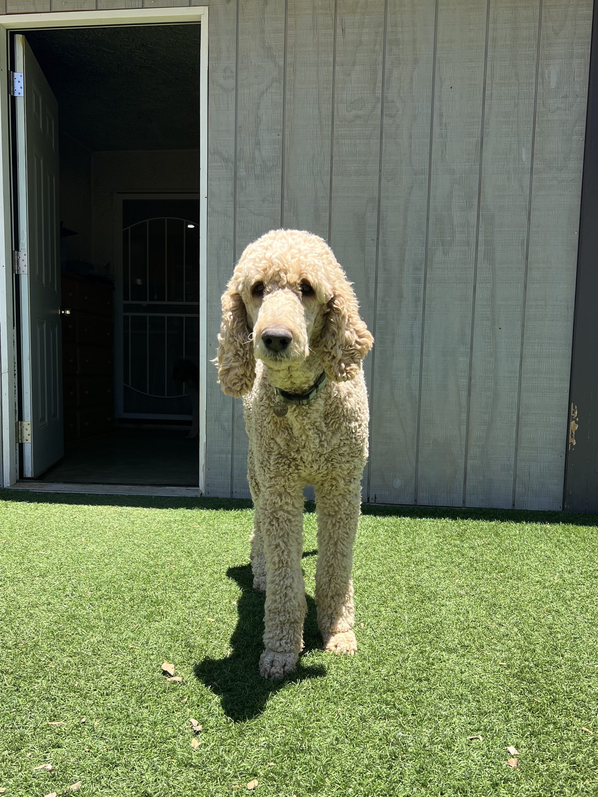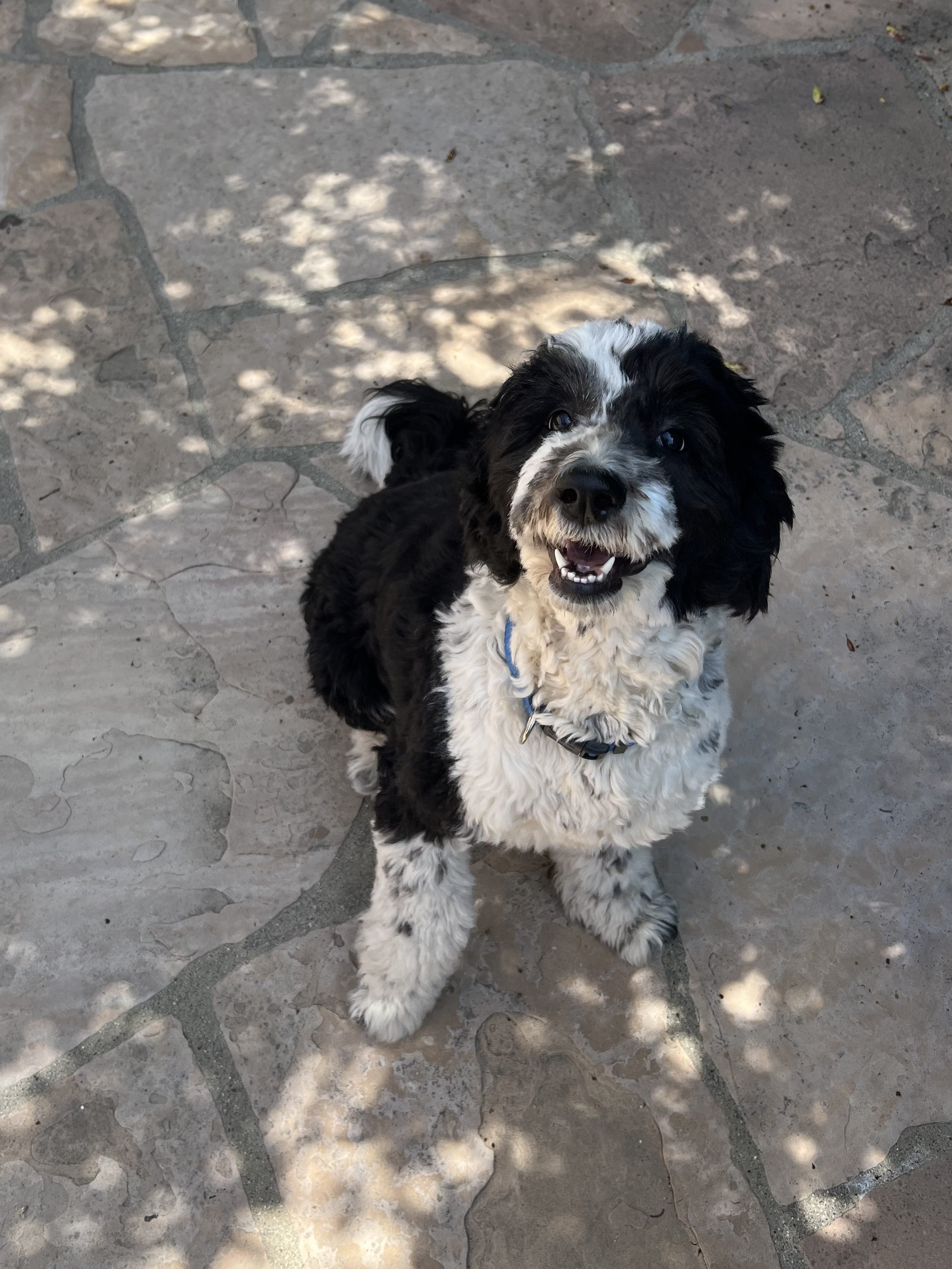 Meet Riley, a spirited black and white sheepadoodle bursting with energy and playfulness. She’s always ready for an adventure, whether it’s a hike, a game of tug-of-war, or a swim at the beach. Her lively and enthusiastic nature makes her the life of any gathering, spreading fun wherever she goes. Riley’s boundless energy and playful antics make her the best companion, keeping us entertained and on our toes.